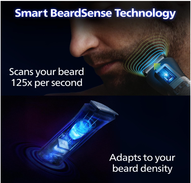 - Beard Sense Technology that scans the beard density 125x per second and boosts power exactly when you need it to tackle also dense, bushy or longer beards.